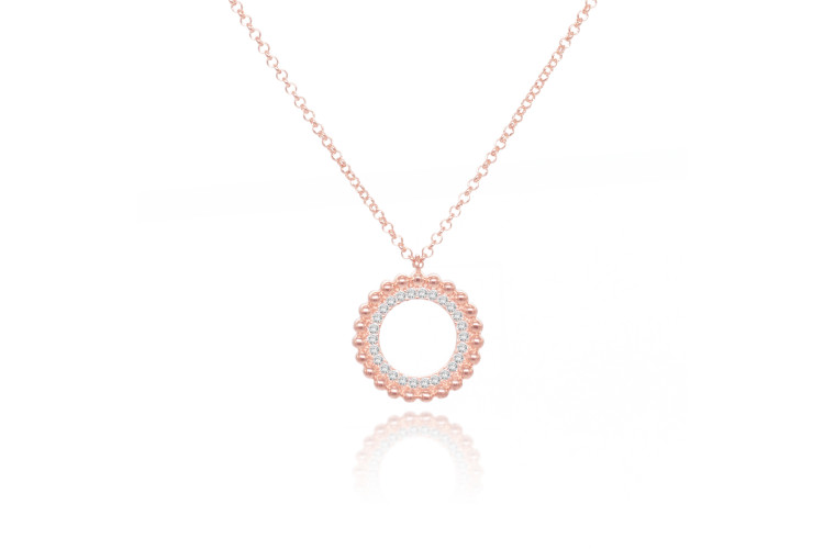 Γυναικείο κολιέ κύκλος από ροζ επιχρυσωμένο ασήμι 925, διακοσμημένο με λευκά ζιργκόν.