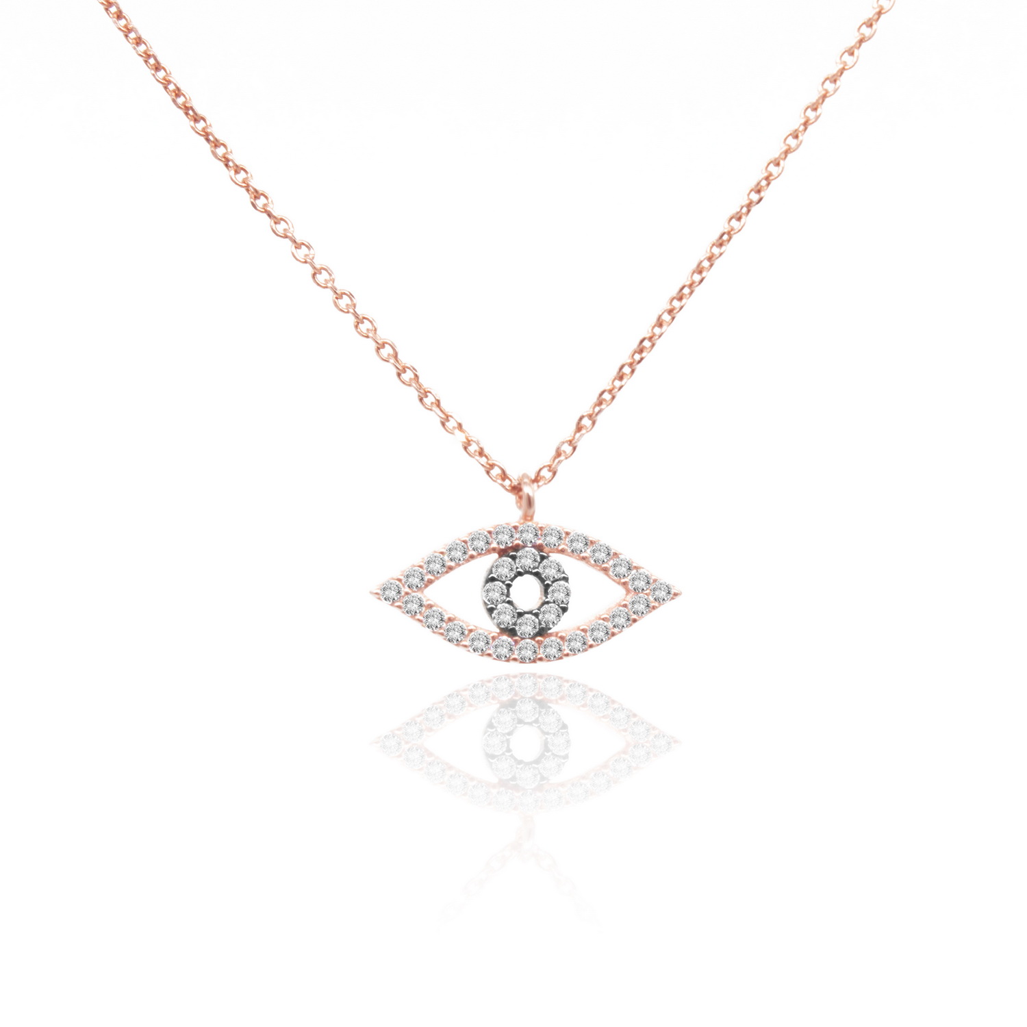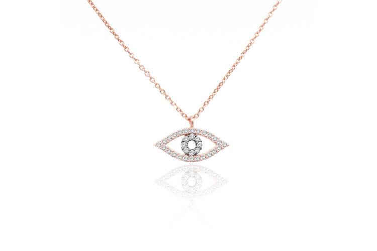 Evil Eye necklace made of rose plated sterling silver 925, decorated with white cubic zirconia.