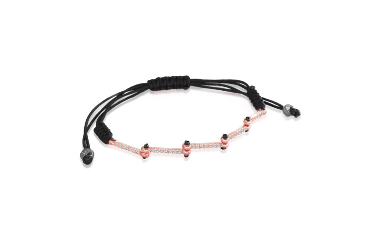 SPARKLE collection women's bracelet with black coloured cord made of rose plated sterling silver 925, decorated with white cubic zirconia.