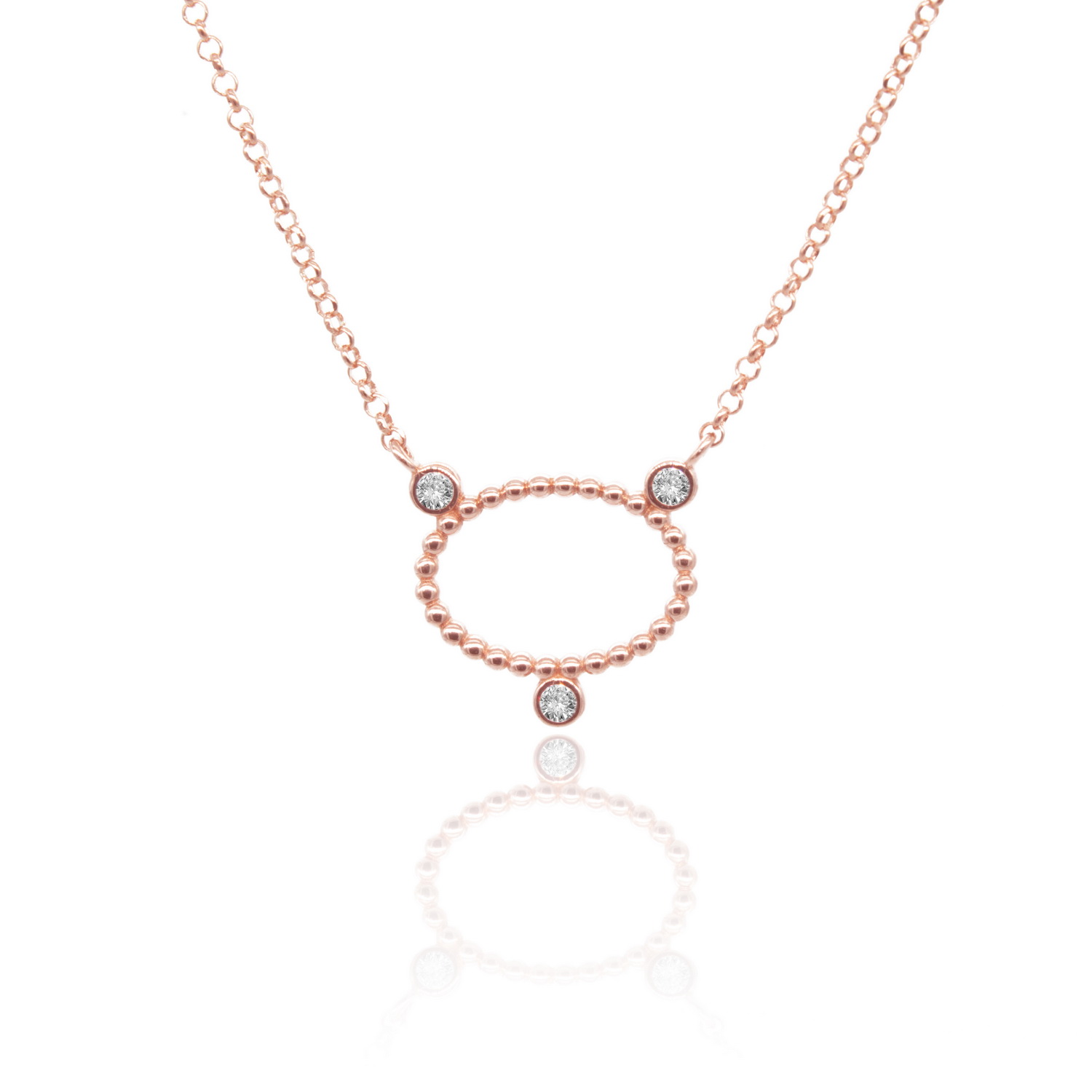 Women's necklace made of rose plated sterling silver 925, decorated with white cubic zirconia.