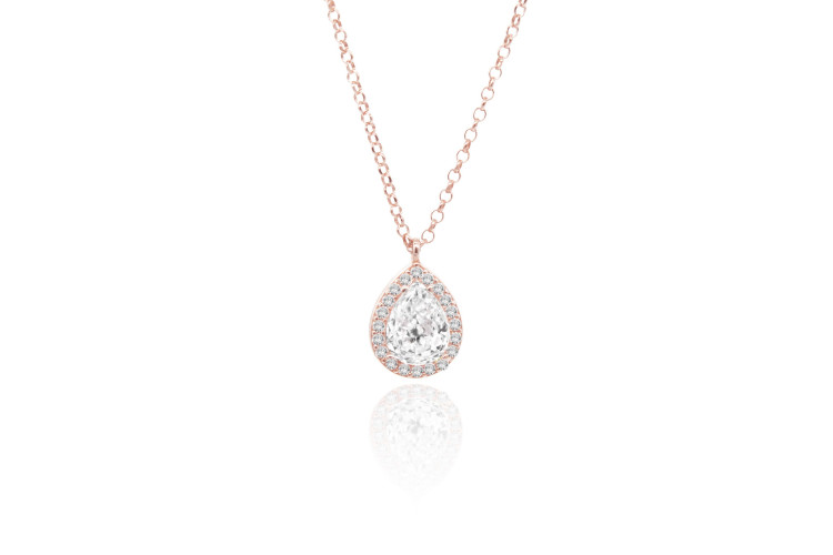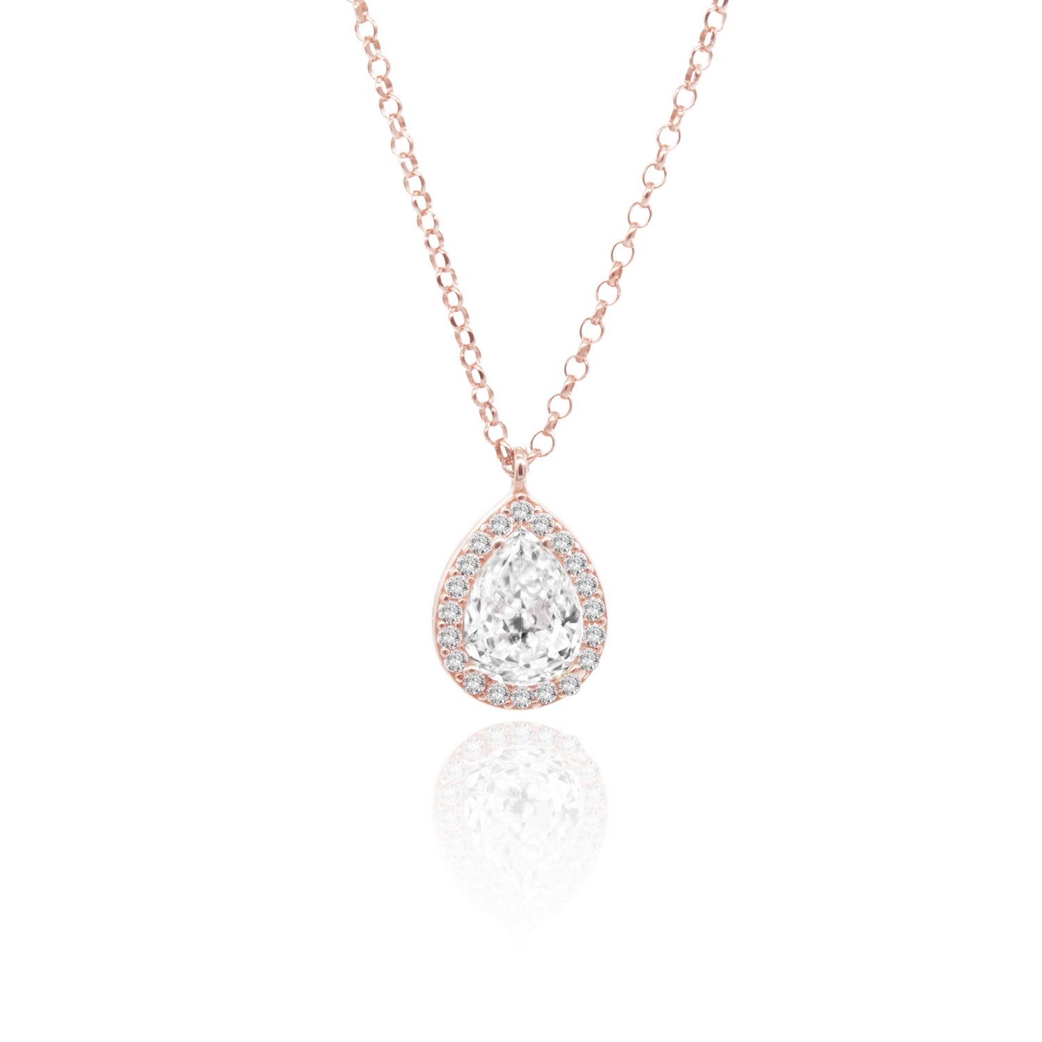 Halo Drop necklace made of rose plated sterling silver 925, decorated with white cubic zirconia.